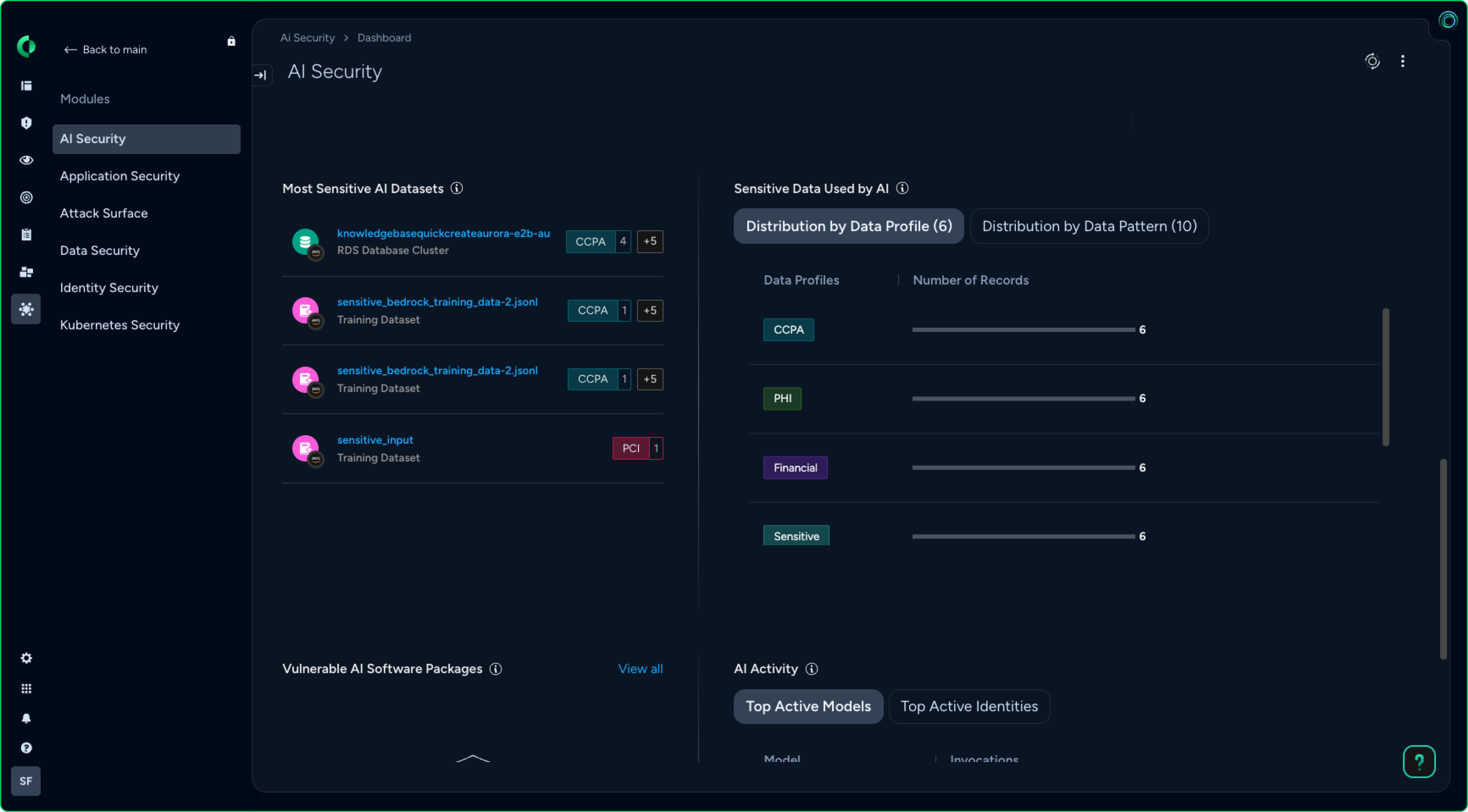 Detect and classify sensitive data used for model training, embeddings and retrieval-augmented generation (RAG). Prioritize AI risk based on data sensitivity, including models trained on sensitive data.